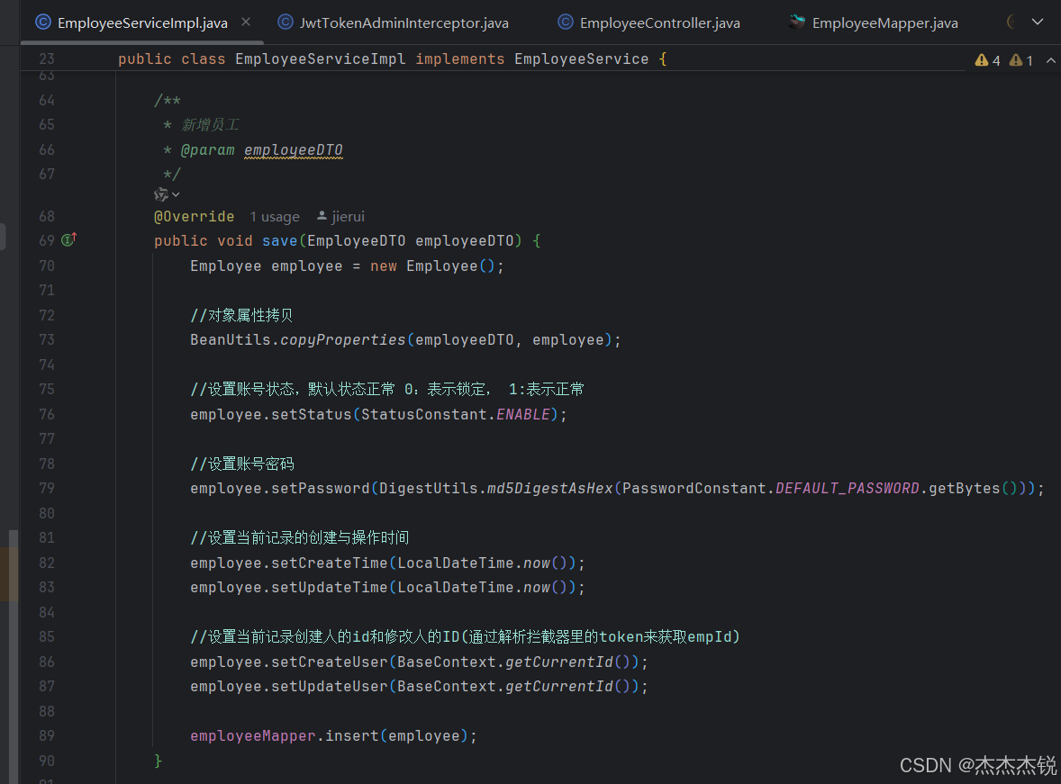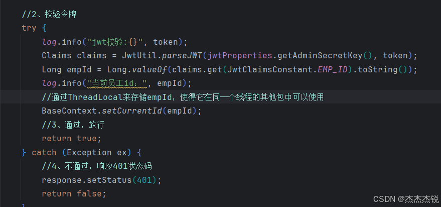 通过ThreadLocal实现了表明是谁对新增员工进行了创建与修改。那么我们就需要拿到此时的token,并对他进行解析,把这值传入的线程的局部变量中。