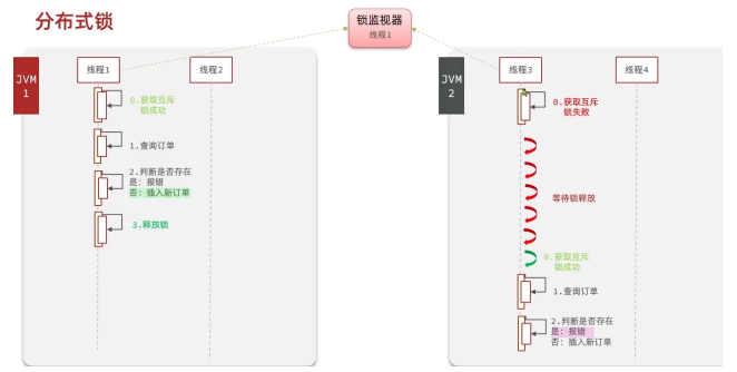 所以我们引入了分布式锁来使多个JVM同时使用一个锁监视器。
