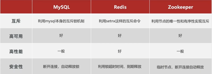 分布式锁的核心是实现多线程互斥,而满足这一点的方式有很多,常见有以下三种: