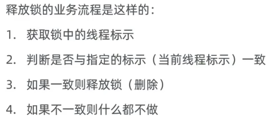 当线程1获取锁,执行完业务然后并且判断完当前锁是自己的锁时,但就在此时发生了阻塞,结果锁被超时释放了,线程2立马就趁虚而入了,获得锁执行业务,但就在此时线程1阻塞完成,由于已经判断过锁,已经确定锁是自己的锁了,于是直接就删除了锁,结果删的是线程2的锁,这就又导致线程3趁虚而入了,从而继续发生超卖问题。所以必须确保他俩为原子性的操作必须一起执行,不能出现间隔。