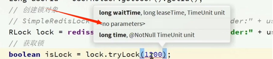 SimpleRedisLock lock = new SimpleRedisLock(stringRedisTemplate, "order:" + userId);