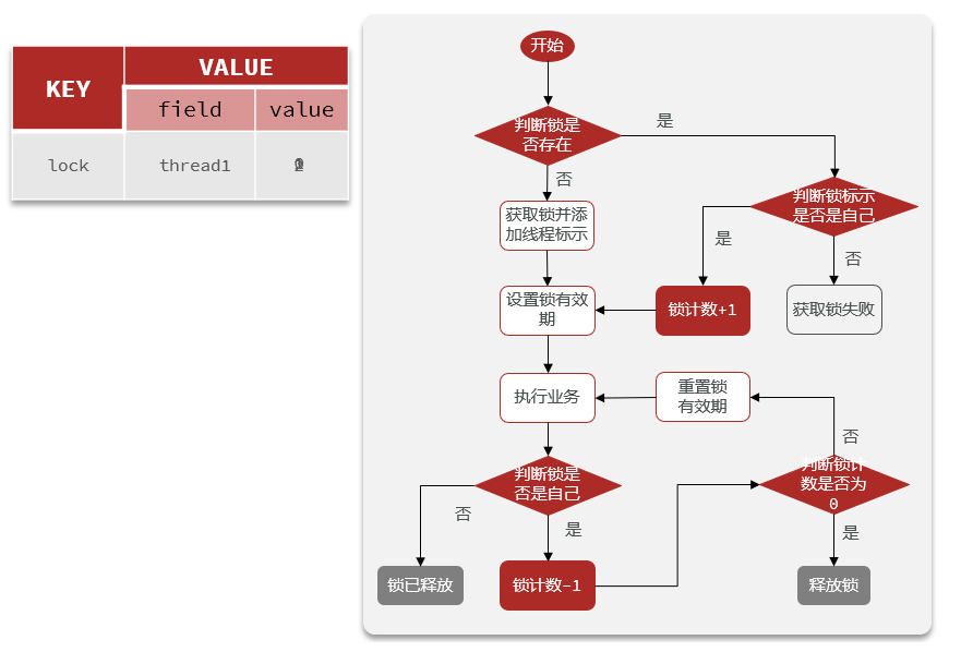 可以看到,可重入锁需要进行一系列的逻辑判断,这些逻辑代码我们最好将它们全都封装到一个 Lua脚本 中,以确保操作的原子性,从而确保线程安全(Redisson底层也是这么干的)