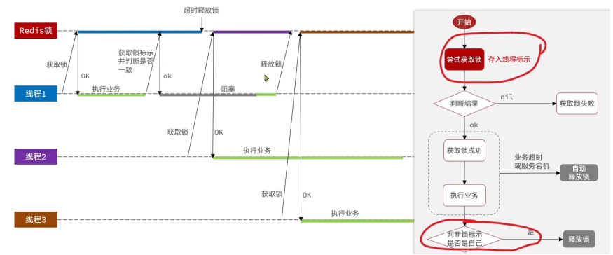 有一种极端的情况就是由于业务阻塞,导致锁被提前释放了;并且线程一再业务执行完释放锁的时候,把别人的锁给删了。所以我们要获取锁标示,并判断我们获取的锁和删除的锁是否一致。