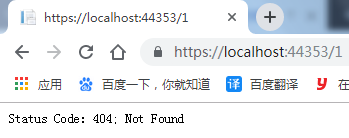 运行应用程序在浏览器上输入不存在地址https://localhost:44353/1看看配置该中间件后的效果,你会发觉当我们输入上述地址后会跳转到https://localhost:44353/Error/404链接去了,并显示: