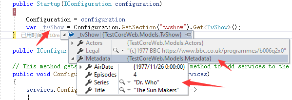 然后再新增一个对应配置内容的实体模型(/Models/TvShow.cs),其对象图包含Metadata和 Actors类:
