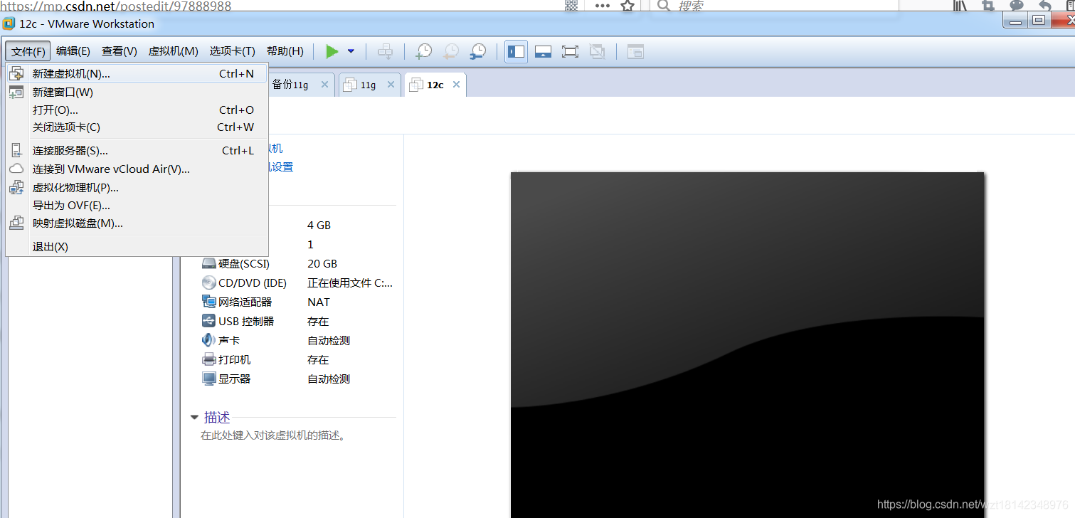 1.打开软件VMware并点击文件-新建虚拟机 ,或者快捷键Ctrl+N创建