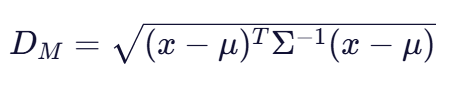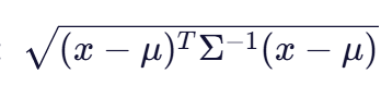 $\sqrt{(x-μ)^T Σ^{-1} (x-μ)}$ |
