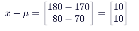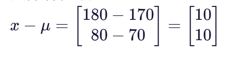 - 计算样本与均值的差向量:对于任意一个样本点x,计算其与均值向量μ的差向量(x - μ) 。