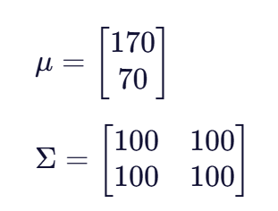 其中,身高方差为100(标准差为10),体重方差也为100(标准差为10),身高和体重的协方差为100,表明两者高度正相关。