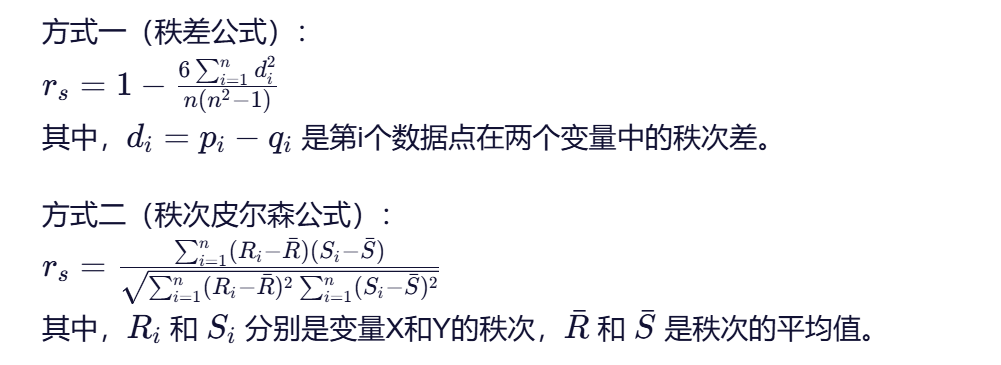 斯皮尔曼秩相关系数有两种等价的计算方式:
