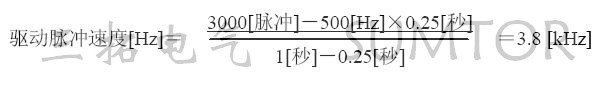 但是,自启动速度不可能是5kHz,应该采用加/减速运行方式来驱动。如果加/减速时间设置为定位时间的25%,启动脉冲速度为500[Hz],则计算方法如下: