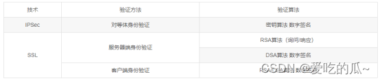 IPSec采用双向身份验证,SSL采用单向/双向身份验证。