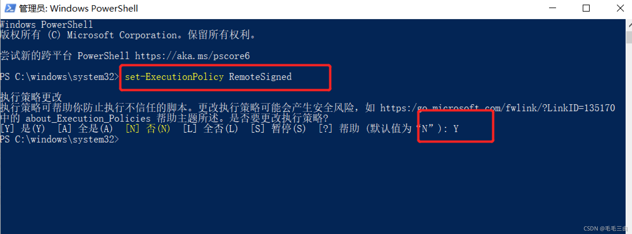 2. 然后输入下面的指令:set-ExecutionPolicy RemoteSigned