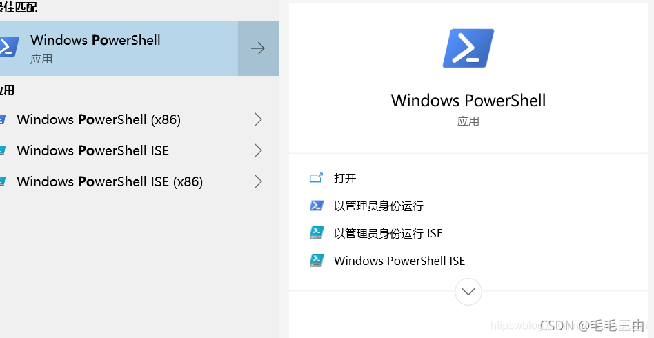 1. 在开始处(windoss)搜索powshell,以管理员身份运行