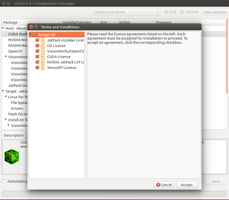 - 执行./JetPack-L4T-4.1-linux-x64_b5.run