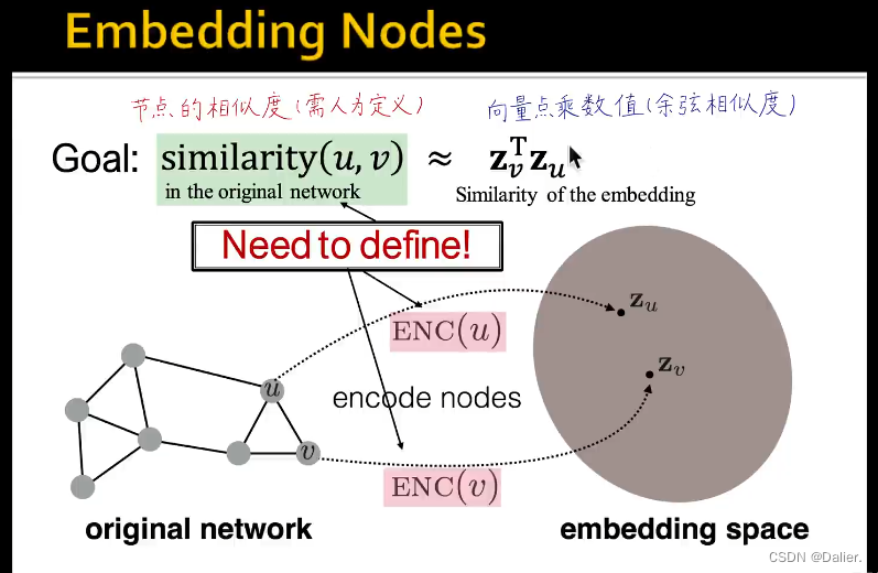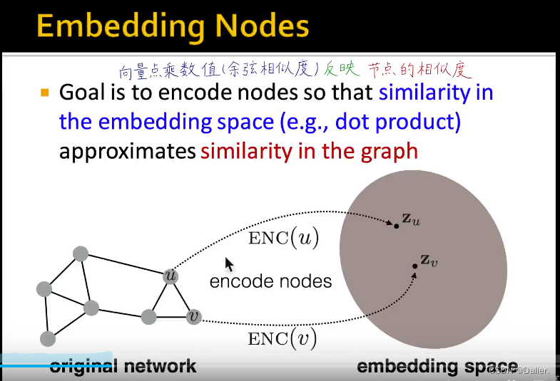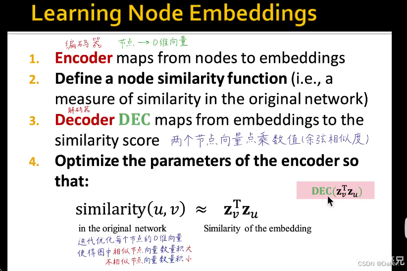 目标:使得编码器能够将图中相似节点数量积大,不相似节点数量积小。