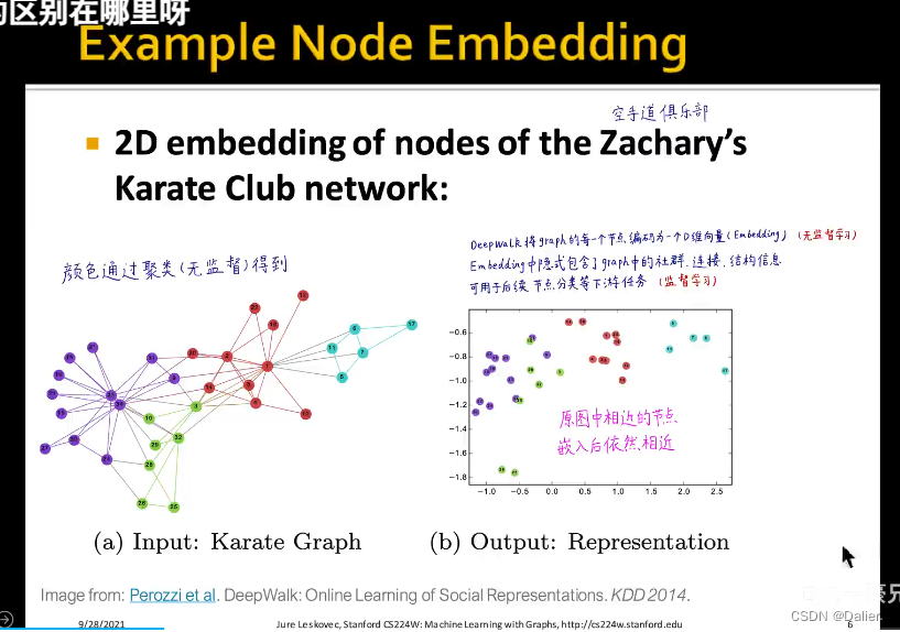本章学习的随机游走:在图里面像醉汉一样随机游走,如果节点出现在同一个序列里,就定义为相似