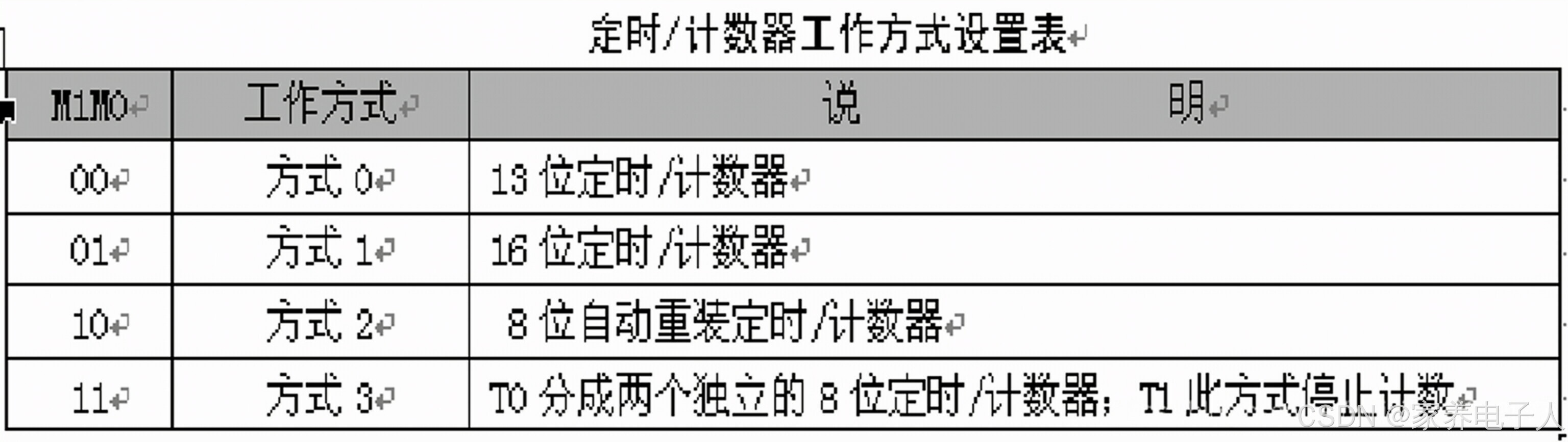 M1M0:工作方式选择位。定时/计数器有四种工作方式,由M1M0进行设置。