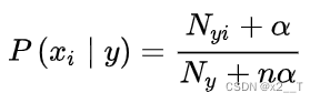 法国数学家拉普拉斯最早提出用加1的方法估计没有出现过的现象的概率。 拉普拉斯平滑处理后的条件概率计算公式为: