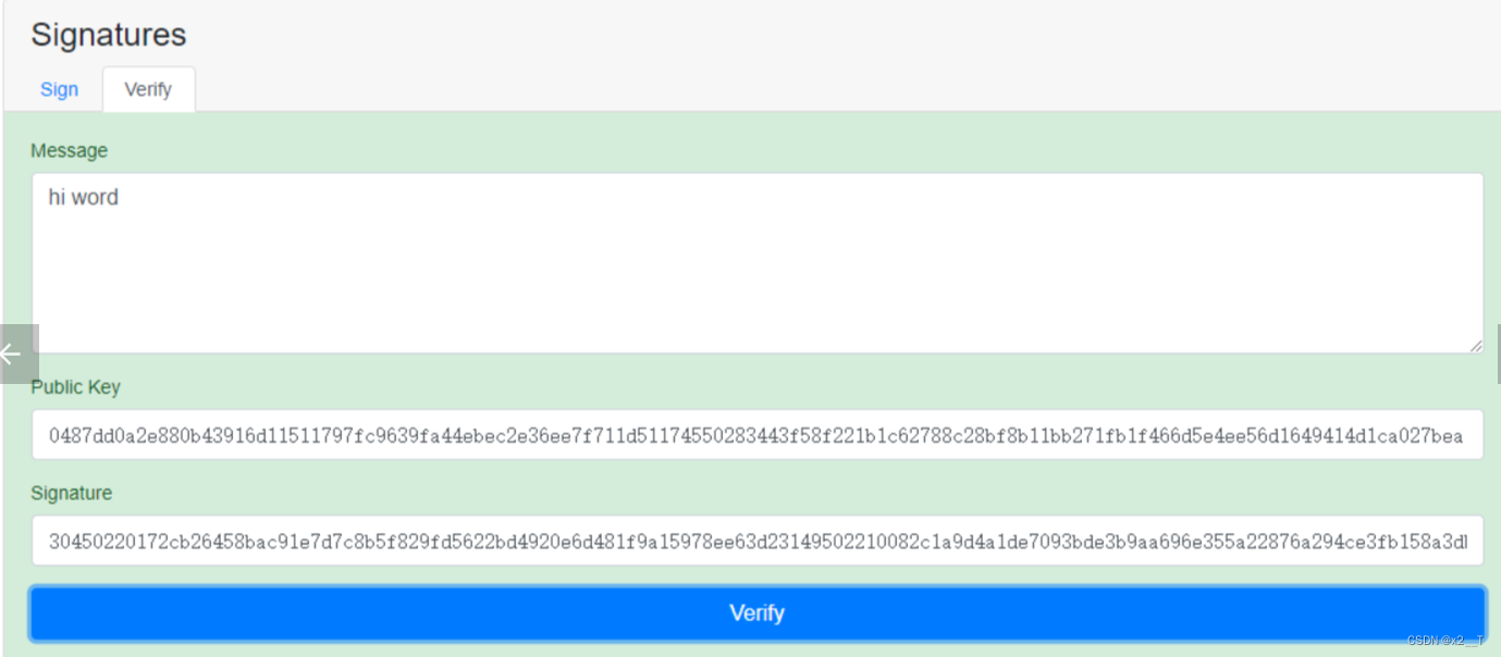 验证:message+公钥=signature(你的签名)