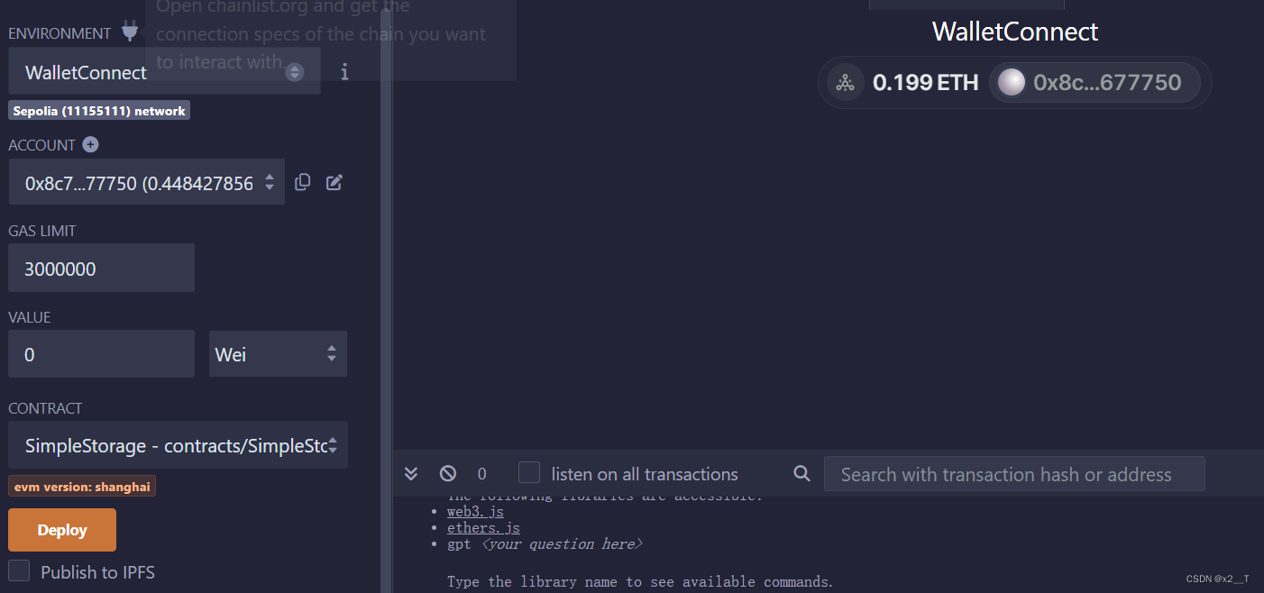 - 先改变网络,然后进行connect,随后account会自动填入,接着点击Deploy
