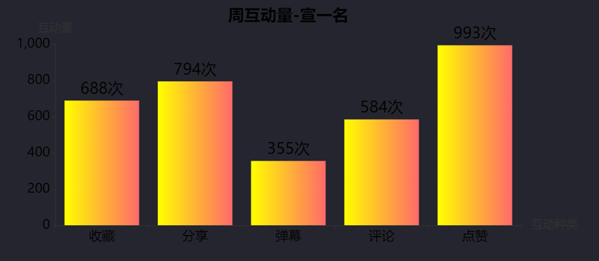 plt.title('视频周播放量数据—宣一名', fontsize=35, pad=45) # 设置标题