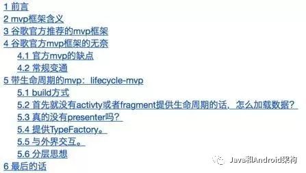 用contract来承载view和presenter的接口定义。这一点不是重点,设计接口规范很好。但是没有也没有关系,我认为有时候还会有过度设计之嫌,因为view和presenter都是和业务相关的,a业务场景硬要用b业务的view或presenter,肯定会有不合适之处(难道要用if...else)。即便现在合适,你挡不住pm给你加场景。