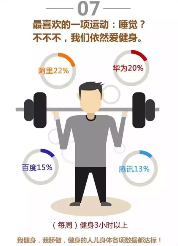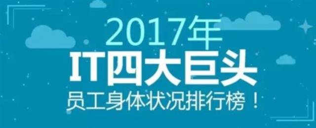 日前,悄然流出一份关于《2017年IT四大巨头员工身体状况排行榜》的报告。这份是对百度、阿里巴巴、腾讯、华为四大互联网巨头的员工进行调研,结果显示,员工身体状况不乐观,与长期加班、熬夜、没有时间健身等众多因数有关。
