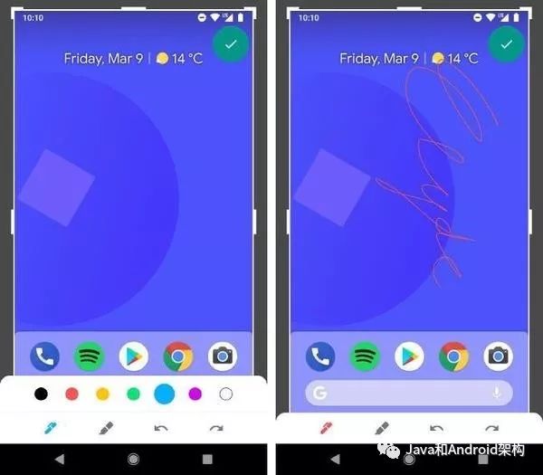 在Android P的第一个开发者预览版也就是DP1的版本中,系统已经加入了原生的截图编辑功能。在截图后,可以对图片进行一些简单的涂抹和裁剪。