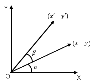 x'=rcos(\alpha + \beta) = rcos\alpha cos\beta - rsin\alpha sin\beta = xcos\beta - ysin\beta \\ y'=rsin(\alpha + \beta) = rsin\alpha cos\beta + rsin\beta cos\alpha = xsin\beta + ycos\beta