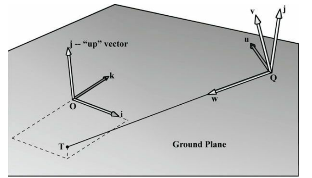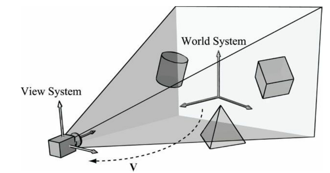 变换矩阵是通过与顶点坐标(或向量)进行矩阵乘法来实现对顶点的变换,变换得到的顶点坐标(或向量)为在原坐标系下对应的坐标。