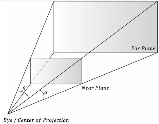 **垂直视场角(FOV)**是指视锥体垂直方向的最大夹角。这就变相定义了这个视锥体近平面的高度了: