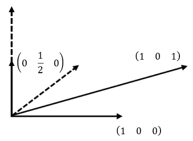 例如有下图的这样一个变换,y轴缩小为原来的1/2,而z轴加上1个单位的x轴向量得到新的z轴。
