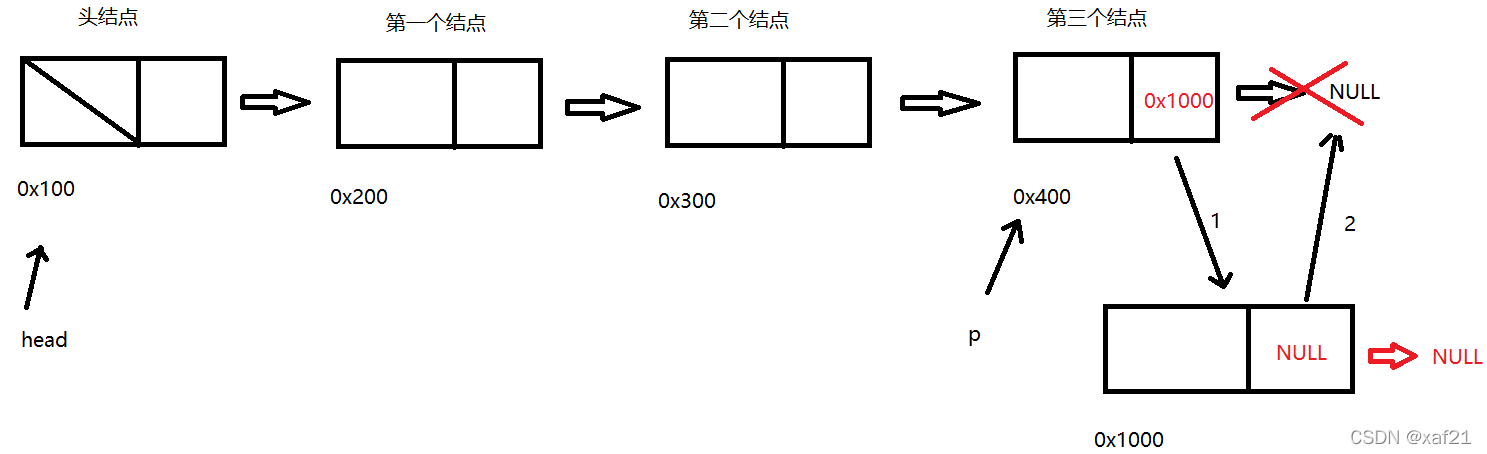 //尾插法插入数据 void LinkListInsertTail(linklist *head,DataType value) { //申请空间,分配结点结构体 linklist *tmp = (linklist *)malloc(sizeof(linklist)); tmp->data = value; tmp->next = NULL; //找到最后一个结点 linklist *p = head; while(p->next != NULL) { p = p->next; } //将新插入的结点保存在最后一个结点的后面 p->next = tmp; //将新插入的结点的指针域指向NULL tmp->next = NULL; return; }