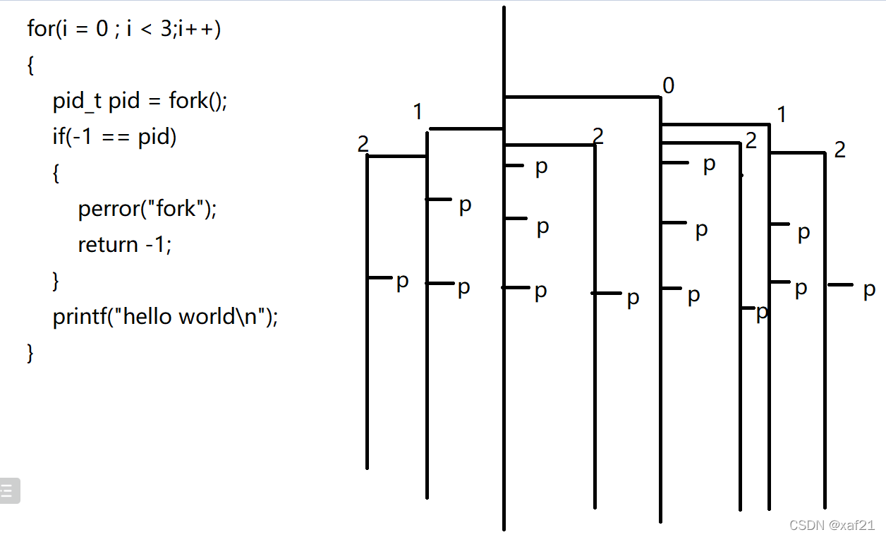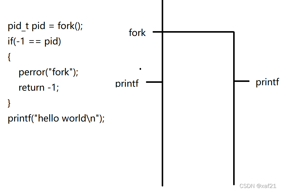 #include <stdio.h>#include <sys/types.h>#inclue <unistd.h> #include <sys/types.h>#include <sys/stat.h>#include <fcntl.h>int main(int argc, char const *argv[]){ int fd = open("./1.txt",O_RDWR|O_CREAT,0666); if(-1 == fd) { perror("open"); return -1; } pid_t pid = fork(); if(-1 == pid) { perror("fork"); return -1; } if(pid == 0) { printf("我是子进程\n"); write(fd,"hello world",11); } else if(pid > 0) { printf("我是父进程,我的子进程ID号为%d\n",pid); char buf[123] = {0}; sleep(1); lseek(fd,0,SEEK_SET); //close(fd); //fd = open("./1.txt",O_RDONLY); read(fd,buf,sizeof(buf)); printf("buf = %s\n",buf); } return 0;}