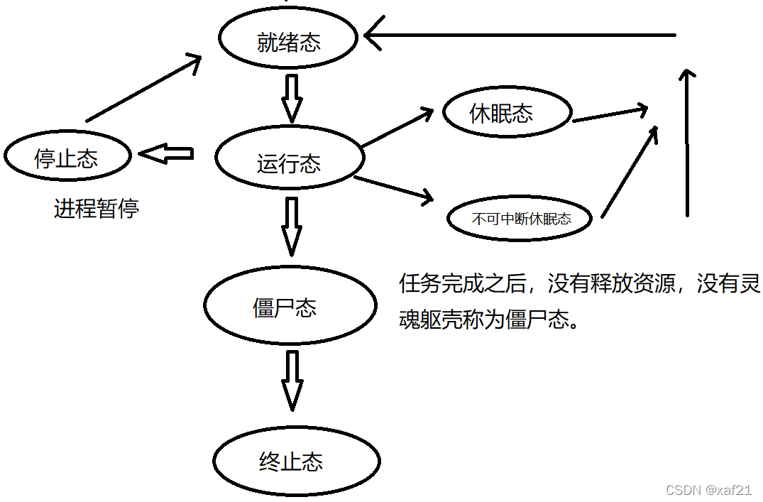 子进程优先于父进程结束,子进程会认为该父进程会回收自己的资源,但是父进程没有回收子进程资源的功能,或者说父进程一直在忙于自己的事情,未曾去回收子进程资源,子进程资源就得不到回收,但是子进程任务已经结束了,所以说子进程就变成了僵尸进程,僵尸是有危害。注意:以后在写