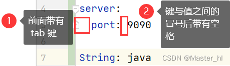 - 一级目录下: 键和值之间的冒号后面要有空格, 千万不能省略!!