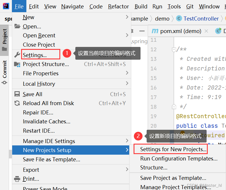 第二步: 按照下图的方式去更改当前项目的 settings 和新项目的 settings.