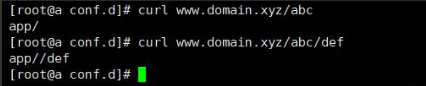 结论:location指令配置了“/abc”,proxy_pass指令后的链接有路径(即"/app/"),Nginx将客户端原始的“/abc”替换成“/app”,然后转交后端。