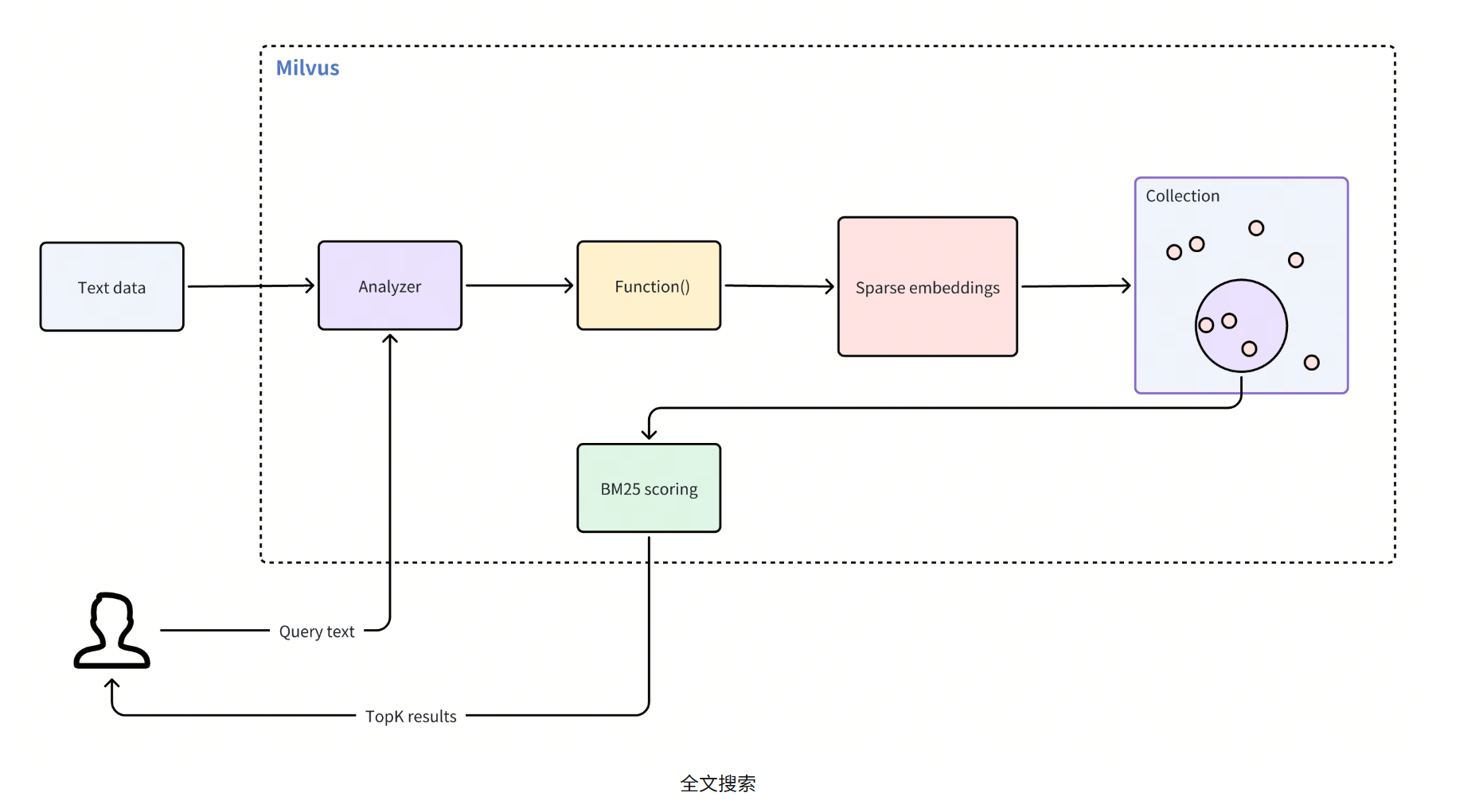 以Milvus向量数据库为例,全文搜索只在 Milvus Standalone 和 Milvus Distributed 中可用,但在 Milvus Lite 中不可用。