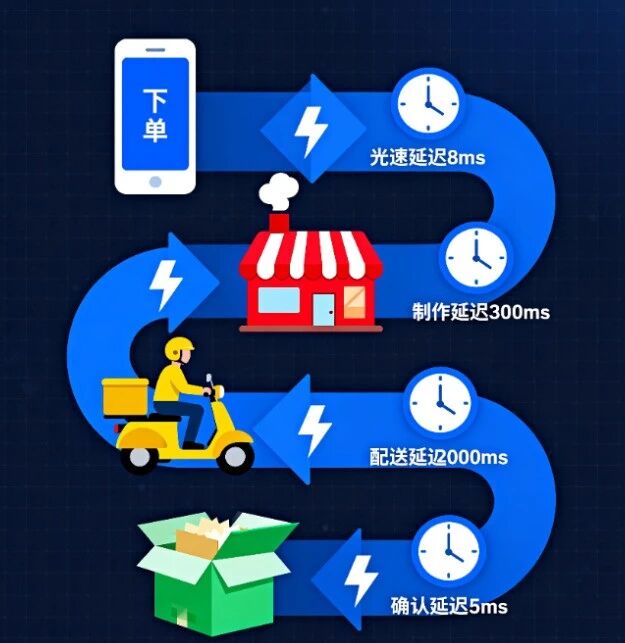 latency的拉丁词源是“latens”(隐藏),指“事情发生到产生影响的隐藏时间”。就像你感染了“外卖病毒”,下单到收到餐的时间就是延迟——对分布式系统来说,就是“数据写入后,多久能被所有人看到”。