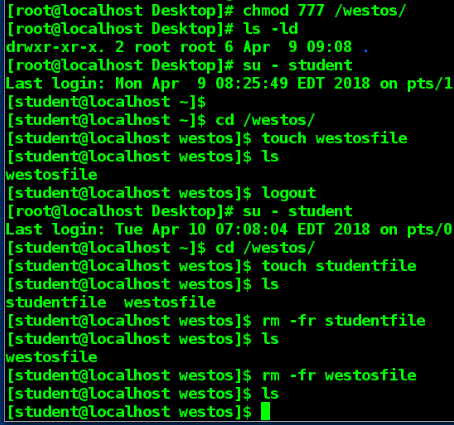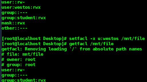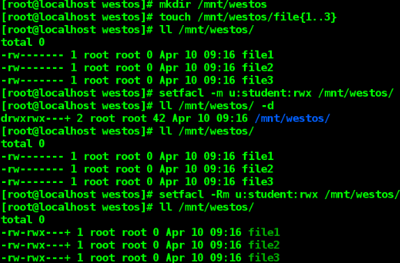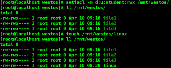 setfacl -m d:u:student:rwx /mnt/westos ##设定在westos目录中