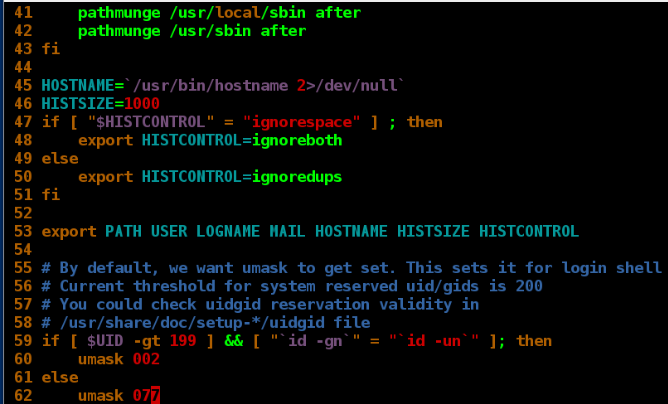 vim /etc/bashrc 71行是普通用户的更改,73是超级用户的更改