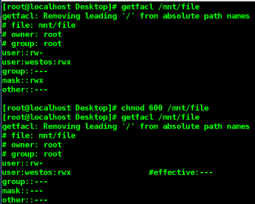 setfacl -m m:rwx /mnt/file #用此命令可以恢复mask的值
