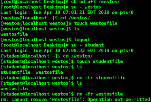 o+t ###之针对目录,当一个目录上有t权限时,这个目录中的文件只能被文件拥有者删除