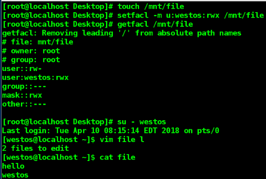 setfacl -Rm u:student:rwx /mnt/westos ##对已经存在的文件起作用