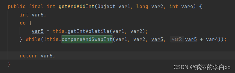 底层又调用了一个unsafe类的getAndAddInt方法