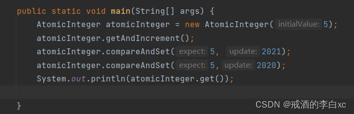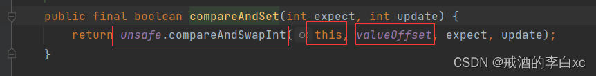 2.执行compareAndSet 方法 比较并交换(解释:一个是期望值,一个是更新值,期望值和原来的值相同时,才能够更改)