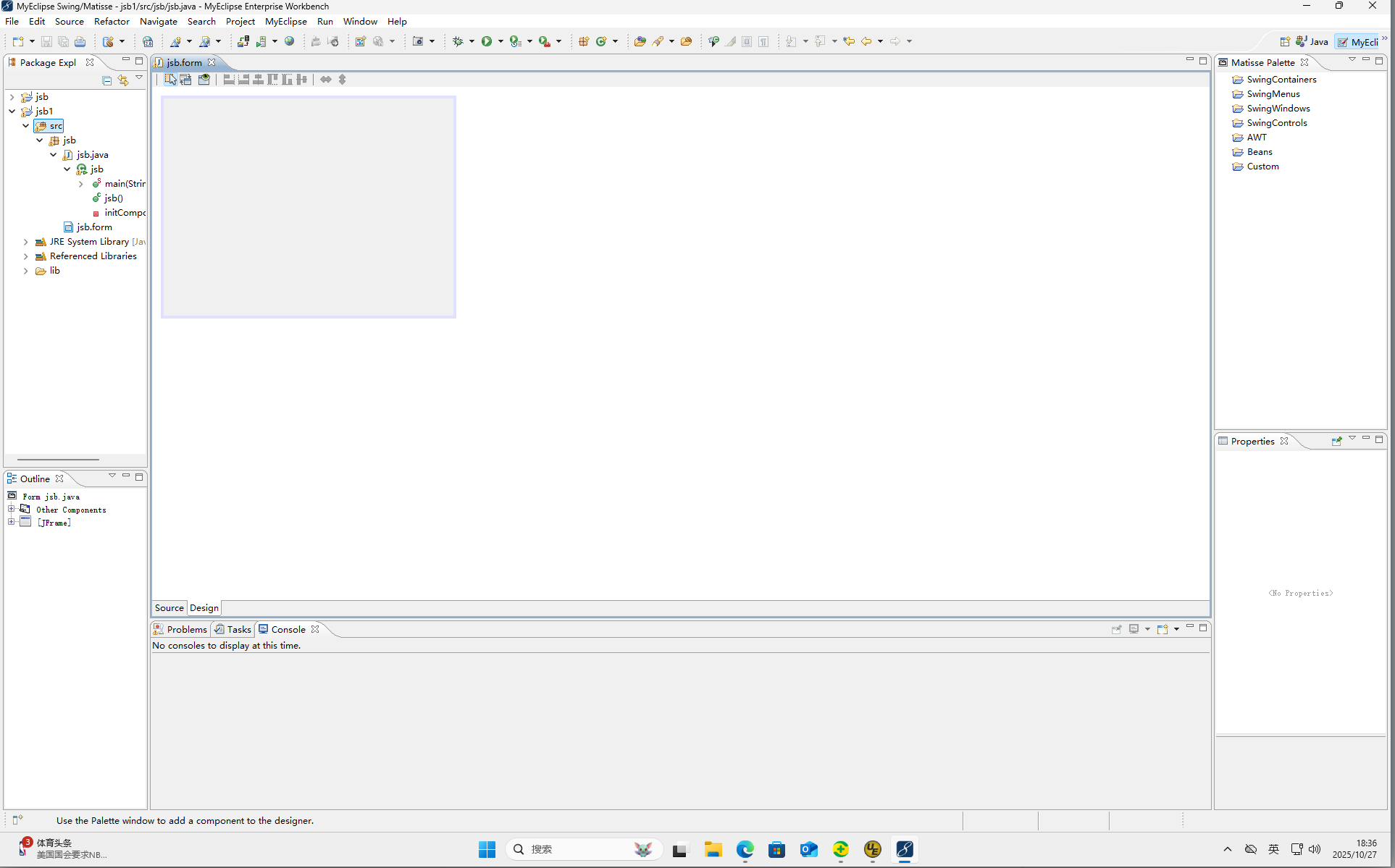 利用 MyEclipse 自带的 Swing 可视化设计器 ,通过拖拽控件 开发 记事本界面 ,实现基础文本编辑 、文件