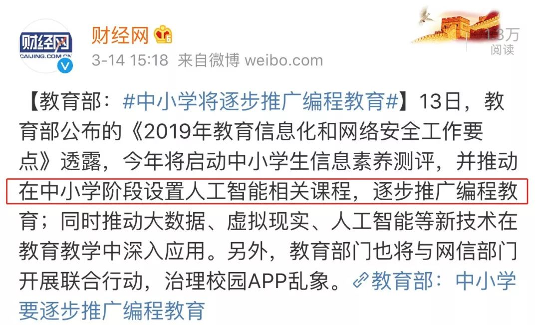 ▲人工智能python语言进入小学课本,并纳入高考!